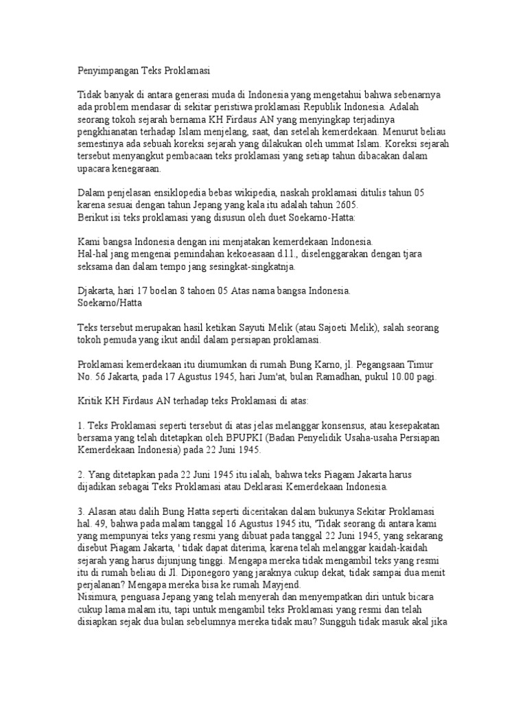 Ketikan Teks Proklamasi Yang Baru! Dikutip dari kemdikbud.go.id, pada hari proklamasi kemerdekaan yakni 17 agustus 1945, naskah proklamasi dibacakan oleh soekarno.